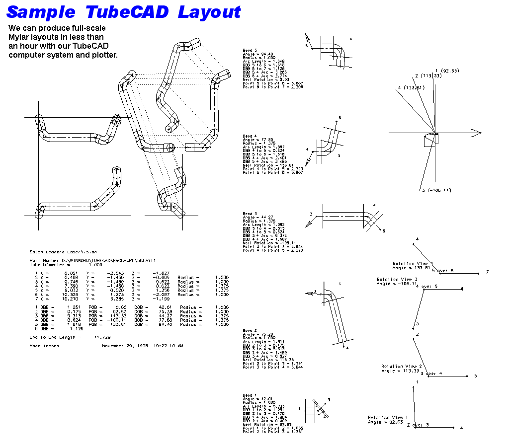 - TubeCAD Layout Service - We can provide same-day full-scale Mylar® layouts using our TubeCAD system.