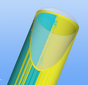 VTube-STEP has been going through calculation engine improvements in the last few versions - because customers continue to share model examples with us that have surfaces that are less than the normal precision. So this version has another breakthrough in centerline calculation. The engine also improves on tubes with end cuts that aren't perpendicular to the axis of the tube straight at the ends (like for coping). Our research shows that these two new rules (described on the right) ensure centerline vector direction accuracy. | ![]() Two new rules are in place in the math engine: 1 - The final two projected points to the centerline must be at least 0.001" apart (0.025mm), or VTube will automatically increase the projection tolerance and try the projection again. 2 - Now VTube requires that more surface points must qualify for projection to the centerline than in previous versions - or VTube will increase the projection tolerance and try again. |