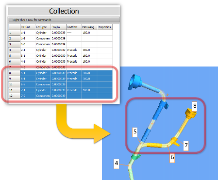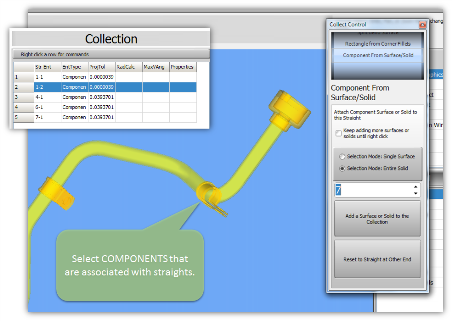This is a major new feature that allows you to add ANY solid model or surface to the collection. This type of collection is called a "COMPONENT". - Since components can be any object that has a surface or is a solid, it is possible to select brackets, end components, holes, coping, or any other feature designed in the tube.