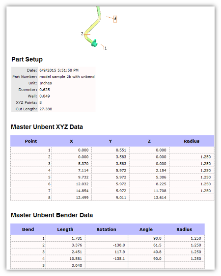 The unbent part image will also display in the report.